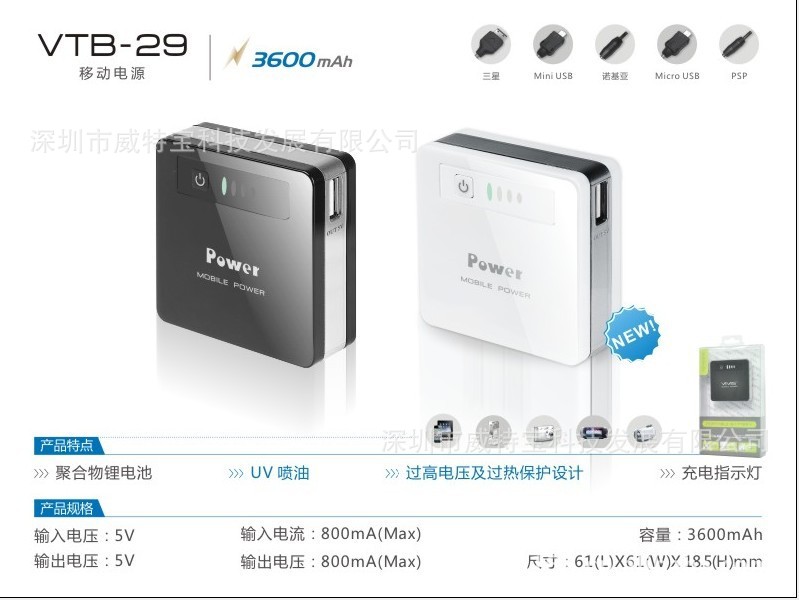 VTB-29移动电源以其强大的能量储备,及时、弥久、智能的续电功能,即刻成为旅行者、数码产品发烧友的贴心伴侣;首推“送礼就要能量”新理念,在礼品行业更是掀起一股时尚新潮!