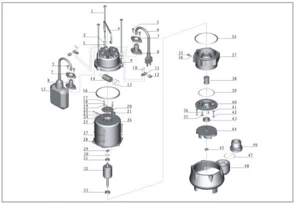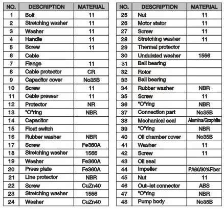 V370F快捷污水潜水泵的分解图: