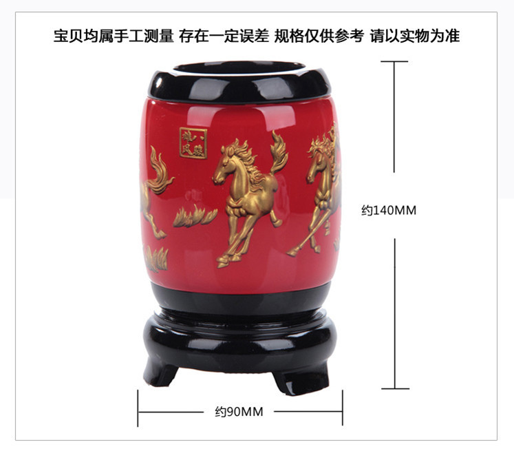 富贵红沙金马到成功笔筒商务礼品办公室摆件