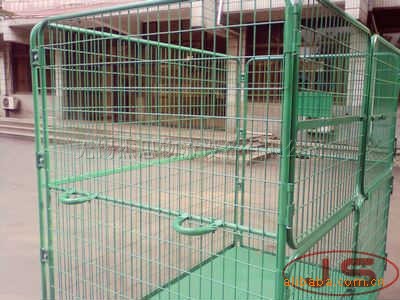 该款台车的三面为密集网格,网格间隙为50X50mm,适用于搬运、存放小物品。底板可以收起折叠,占用空间小。