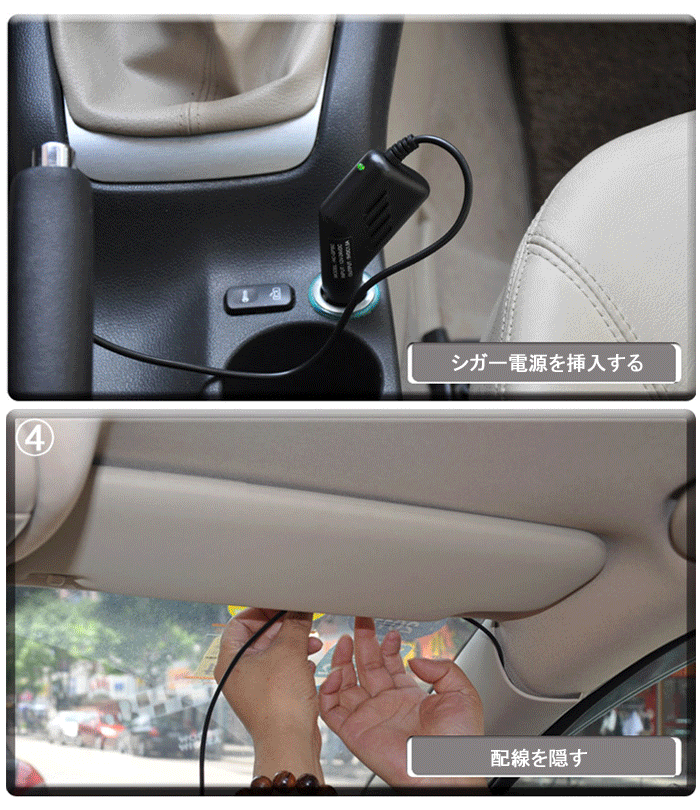 ◎シガー連動機能付き、エンジン起動後、自動的に録画開始します。