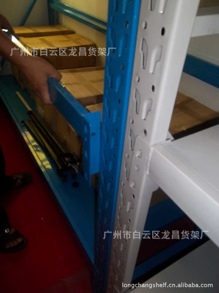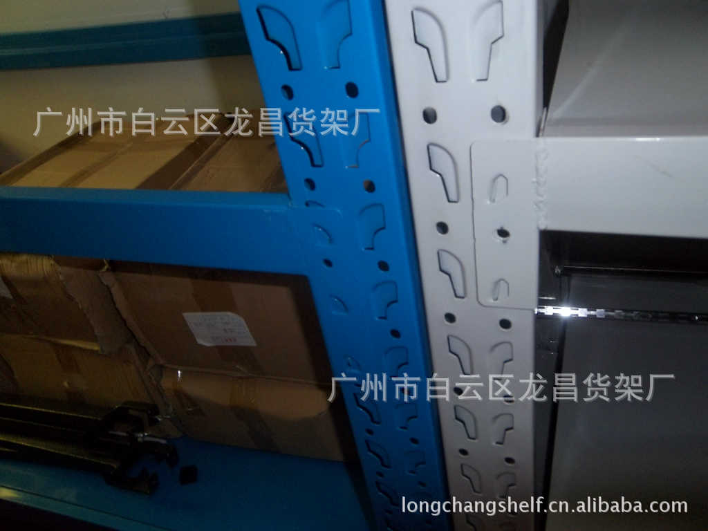 采用蝴蝶孔形立柱形式,依靠货物自重进行锁紧,承载重量大。装拆方便,主、辅架可无限连接,增加货架牢固,节约投入。层板可以以75mm为单位上下任意调节。层面可辅钢层板,亦可铺木板等其它板类。货架由柱片、横梁、层板、安全销和塑料底脚组成。每层可承重500~1000KG,组合式