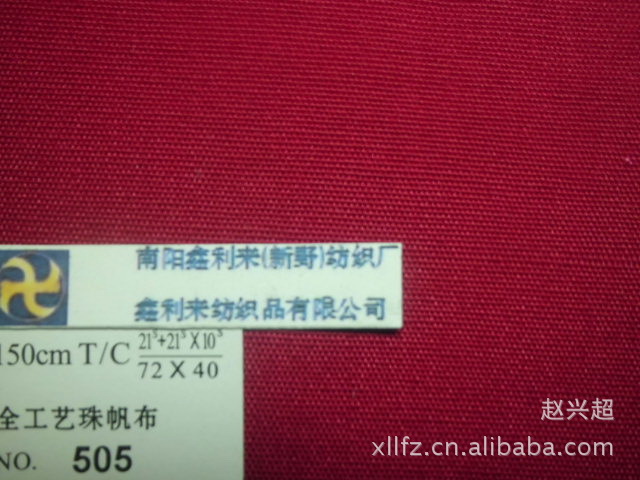 鑫利来纺织厂长期大量供应全棉纯棉和T/C(涤棉)、纯涤6安帆布、8安帆布、10安帆布、12安帆布、14安帆布、16安帆布、18安帆布、20安帆布、22安帆布、24安帆布、26安帆布、28安帆布,常备各种密度、规格的胚布、提花布和几十种色布,其它任何规格颜色、防阻燃、防泼水、防污、耐变黄、防静电、耐高温烫金/银、印花、涂层处理工艺等均可根据客户需要定织、定制。产品使用于婴儿用品、玩具、帽子、鞋子、灯饰、服装、手袋、箱包、家私、床上用品、商标等行业。业务办理:广东省东莞市虎门国际布料交易中心6B-205号。仓务办公:广东省东莞市虎门博美富民布料市场三期后嵘锋大厦303号。联系人:赵先生(总经理)手机:13580762098 专线电话:0769-89779898传真:0769-85252022 QQ:1397121378阿里旺旺:xllfz