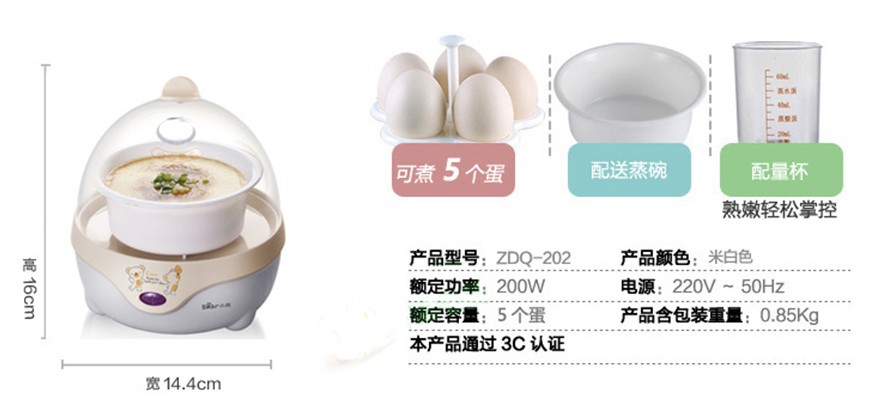 小熊煮蛋器ZDQ-202小熊蒸蛋器 蒸蛋羹 带蒸碗