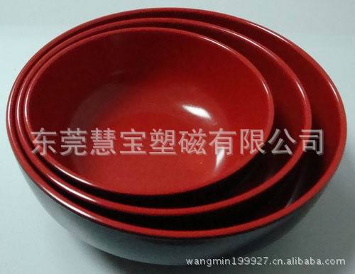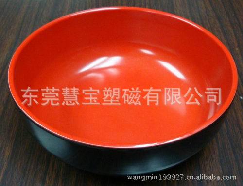 · 安全卫生,无毒无味· 质硬、耐用、不易破碎· 耐酸碱,对油脂、酸、碱及各种溶剂都具备优越抵抗性· 表面光洁,便于洗涤· 耐温性能好,-20℃~+110℃之间性能优良· 重量轻,比重为,适度的重量感· 表面可印制精美、鲜艳图案,且不易剥离· 导热性低,即使装盛热的物品,也可以轻松握持二.生产工艺流程:花纸部:美耐皿餐具的一大优点,就是可以根据客人的不同需要,将所设计的各种图案(企业LOGO等),采用贴花工艺做到产品上。图案颜色失真小,美观,大方,耐用,不易掉色如果有贴花的产品,就需要先把印回来的花纸进行处理,花纸处理第一步:印回来的花纸需要先在烤箱里烤7-8个小时第二步:刷浆(在花纸表面再刷一层稀释的美耐皿粉第三步:上了浆的花纸在转炉上烘干第四步:剪花纸:手工剪第五步:粘花纸(杯子/碗等非平面花纸,需要粘接):