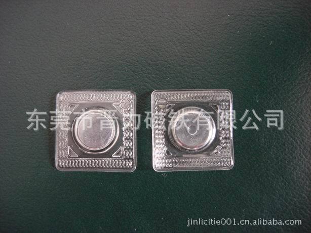 钕铁硼是目前发现商品化性能最高的磁铁,被人们称为磁王,拥有极高的磁性能其最大磁能积(BHmax)高过铁氧体(Ferrite)10倍以上。其本身的机械加工性能亦相当之好。工作温度最高可达200摄氏度。而且其质地坚硬,性能稳定,有很好的性价比,故其应用极其广泛。但因为其化学活性很强,所以必须对其表面凃层处理。(如镀Zn,Ni,电泳、钝化等,经过PVC材料的冲压后,起到了防水的作用、延长了磁扣的寿命和环保干净的作用。