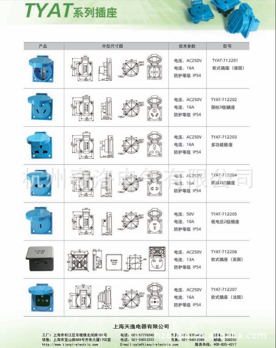 TAYEE上海天逸 TYAT-712201 国际标准 欧式插座 工业插座
