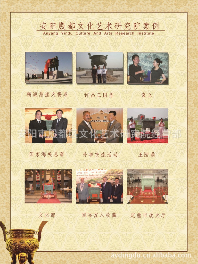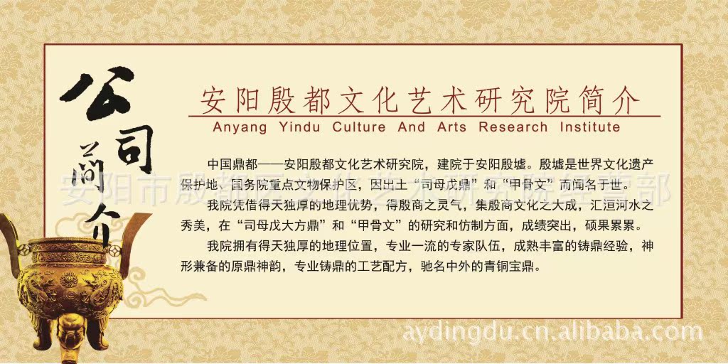 安阳殷都文化艺术研究院,地处世界文化遗产地——安阳殷墟,专业仿制各种甲骨文、制作各种精美甲骨文礼品。“鼎都”牌甲骨文由甲骨文专家亲手精雕细琢,集收藏与观赏于一身,每件仿品无论外观还是质量上都能与原物媲美,神形兼备,文化厚重,使之不仅仅是工艺品、艺术品,更承载了5000年的中华民族文化、殷商文化之灵气,具有很高的欣赏价值与实用装饰价值。我院仿制的甲骨文曾被多家国家级博物馆收藏。我院也可根据客户要求,定制各种内容的甲骨文。可作为会议礼品、商务礼品、馈赠亲友等。