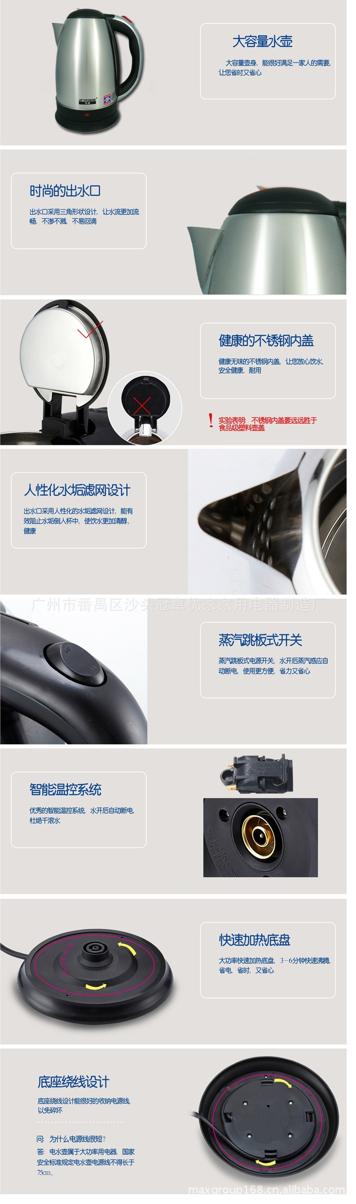 广州冠卓优家家用电器厂位于广州市的卫星城番禺区.这里云集国内众多顶尖家电制造企业.我们是一家专门研发生产及销售电磁炉、电热水壶、豆桨机,新型煤气罩等厨房小家电的企业。通过几年的努力,公司的产品己经销往国外多个国家和地区,并建立起自己的品牌。拥有了大部份国家对产口进口的相关认证。并且所有的产品均通过国家强制认证。在多年的产品外销中,我们一直控制着产品的质量关,使着我们的海外市场业务稳中有升。现在,由于国内的市场需求,我们的产品将以发展经销/分销商,以及批发的销售方式,打开国内市场。我们坚持以质量第一,价格第一,服务第一的三一原则,服务于广大国内消费者。愿以我们的努力来满足你的需求。