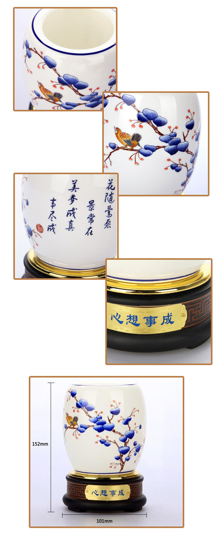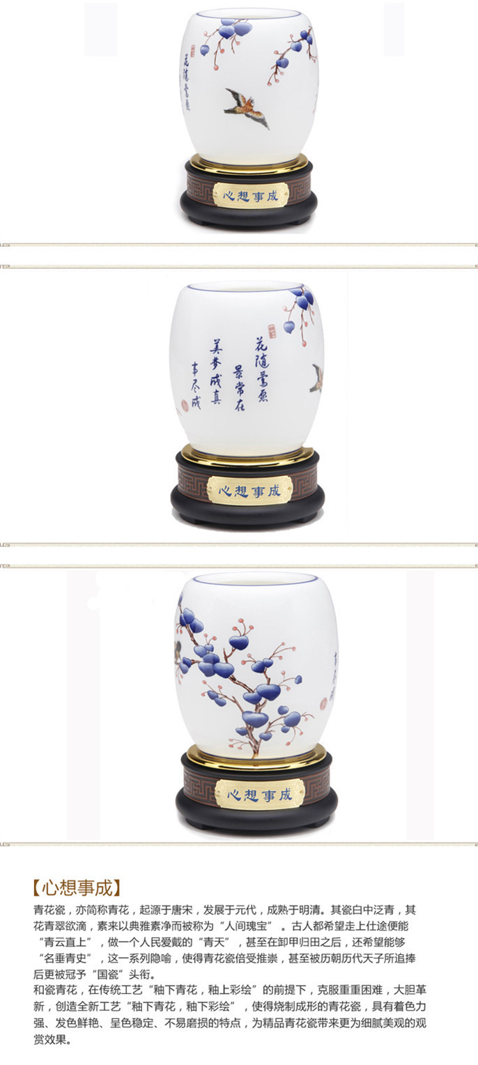 诚信保证 供应高档商务礼品 青花瓷心想事成旋转笔筒