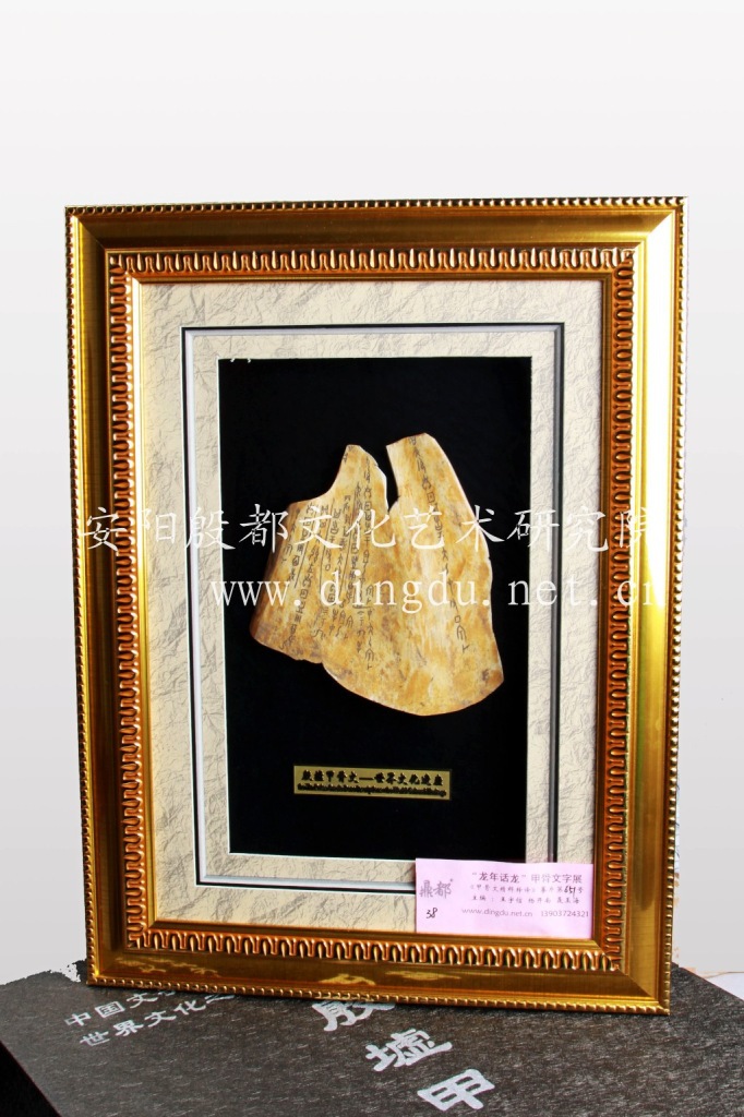 安阳殷都文化艺术研究院,地处世界文化遗产地——安阳殷墟,专业仿制各种甲骨文、制作各种精美甲骨文礼品。“鼎都”牌甲骨文由甲骨文专家亲手精雕细琢,集收藏与观赏于一身,每件仿品无论外观还是质量上都能与原物媲美,神形兼备,文化厚重,使之不仅仅是工艺品、艺术品,更承载了5000年的中华民族文化、殷商文化之灵气,具有很高的欣赏价值与实用装饰价值。我院仿制的甲骨文曾被多家国家级博物馆收藏。我院也可根据客户要求,定制各种内容的甲骨文。可作为会议礼品、商务礼品、馈赠亲友等。