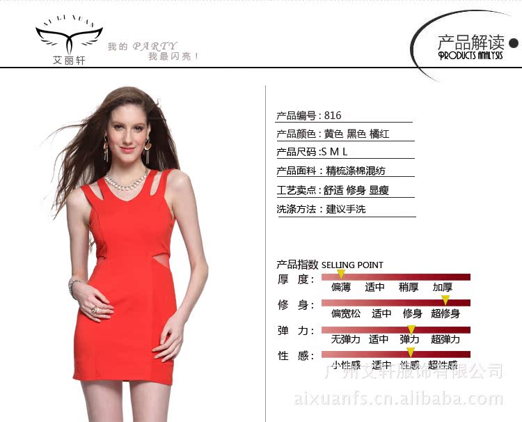 本公司专注欧美小礼服批发已10年有余专业造就品牌实力证明一切!自设大型工厂自助研发设计生产欢迎广大客户来样下单做货价格从优!本店只做批发不设零售需要零售可去我们的分销商的零售店进行购买谢谢配合!
