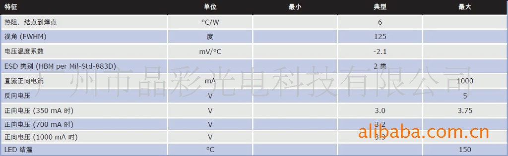 最大1500mA。350mA时亮度为100流明以上(或1500mA时330流明以上,Q4档),色温2800-3200K。