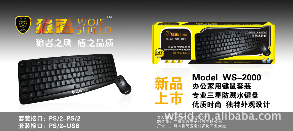 狼盾键鼠套装,办公家庭专用,时尚大气,狼盾WS-2000P+U