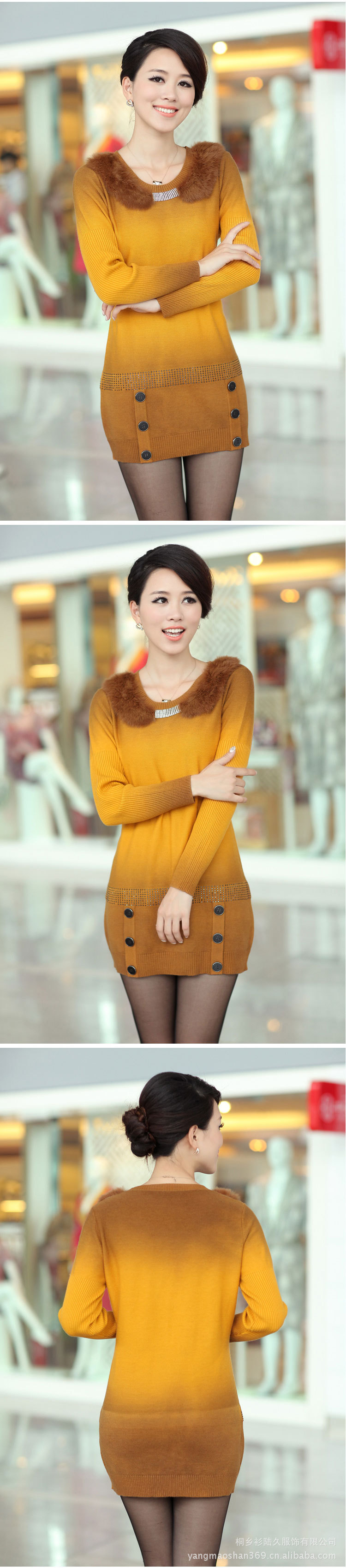 2012秋装新款女装批发 中长款毛毛领 针织衫 毛衣 9933