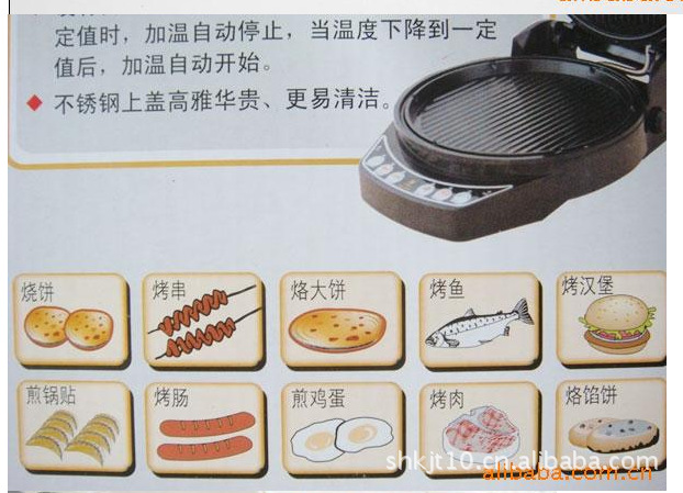 5、上下盘同时加热,食物两面同时均匀受热,并有自动控温、调温装置,当内部温度达到设定值时,加温自动停止。