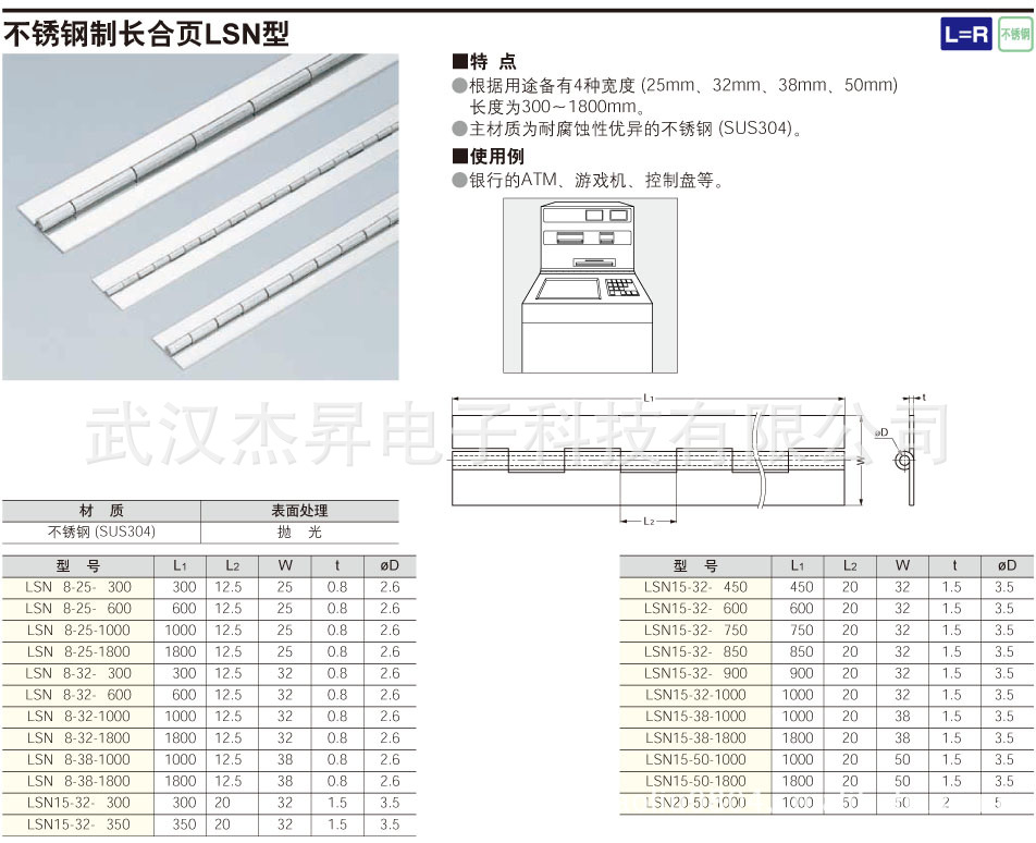 钢琴铰链钢琴铰链 材质:不锈钢304 表面处理:拉丝 焊接 特别定制品 - 交付期请垂询客户服务中心。