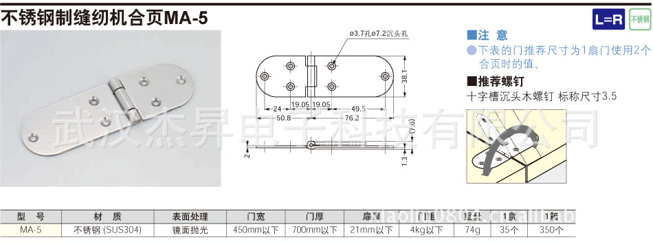 铰链材质:不锈钢304. 表面处理:镜面抛光随配螺钉.