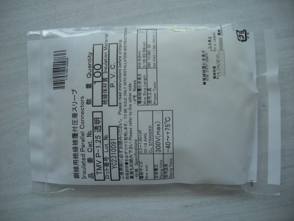 日本日富端子NICHIFU品牌TMV绝缘套管TMV P-1.25(铜线用P型套管)