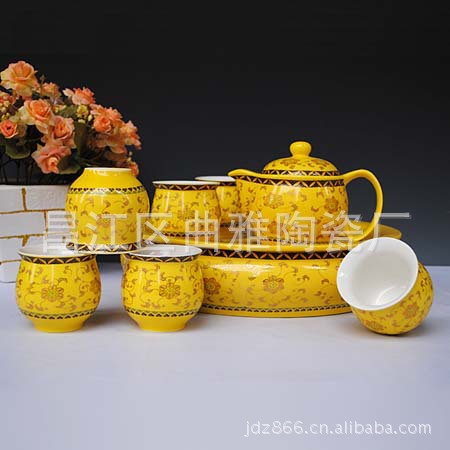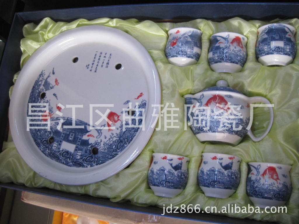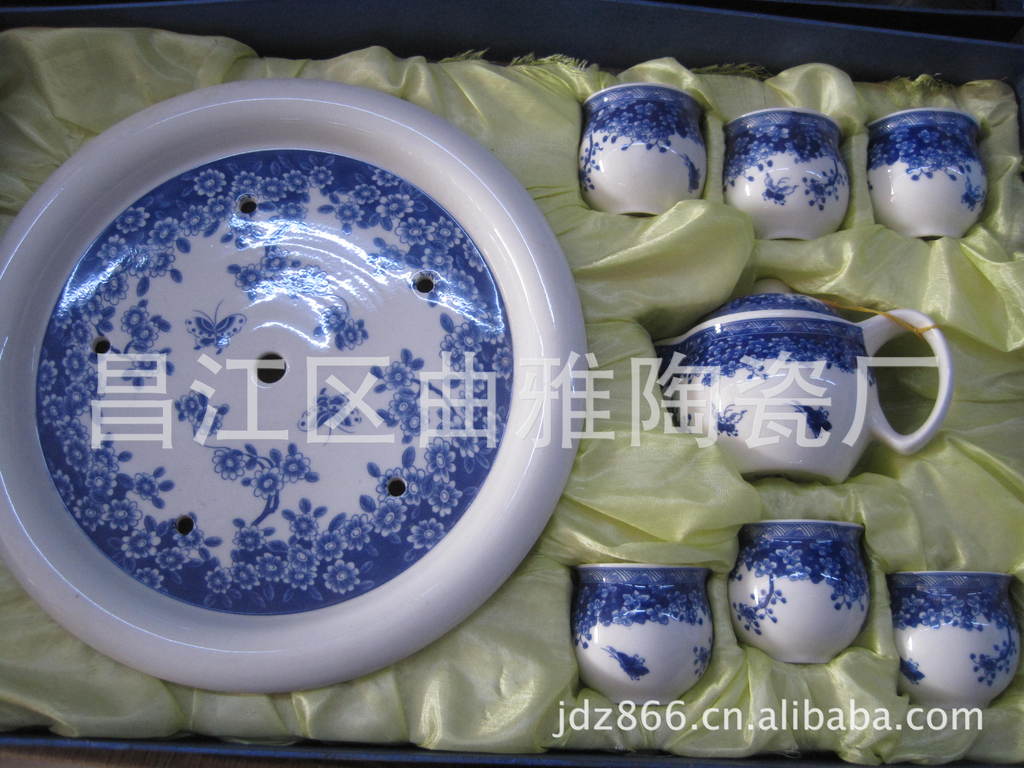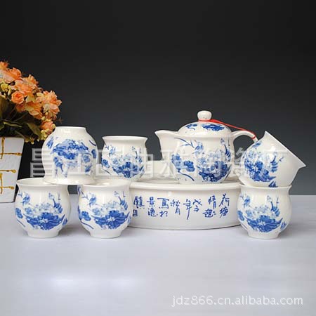 【品名】:陶瓷青花茶具