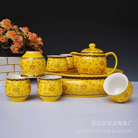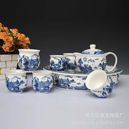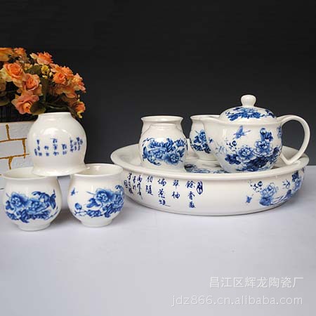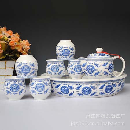 【品名】:陶瓷青花茶具