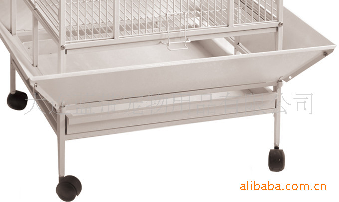底网1件,白钢杯5个,金属托盘2件,走轮4个,栖木杆3根。