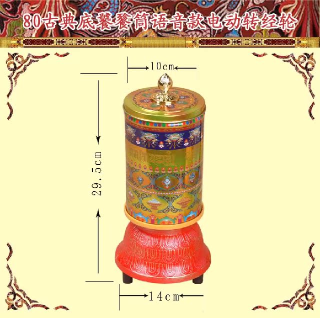 【规格】整体高295mm,经筒直径100mm,底座直径130mm,底座高100mm.重约3 kg(含包装).转速:15转/分钟