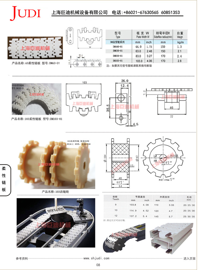 注:柔性链、齿形链无论是在水平面还是垂直面都能胜任急速的转弯,同时摩擦力和噪音都很小,工作温度:-20-+60度最高输送速度:50m/min应用于:食品和饮料工业 卫生卷纸输送-化妆品行业-烟草制造业-电机制造业-机械零件制造业