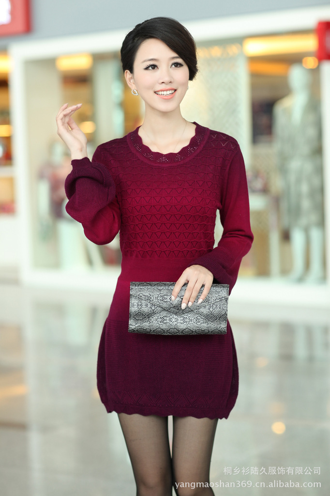 女式2012新款 秋冬灯笼袖毛衣 韩版女装 中长款打底衫 批发9634