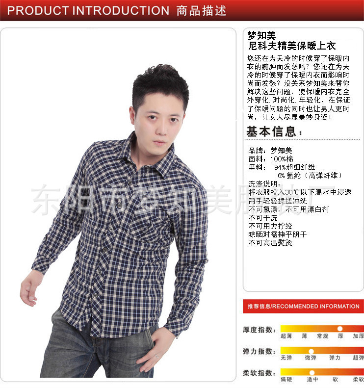 精品梦知美品牌保暖内衣2012新款尼克夫衬衣男款 1271