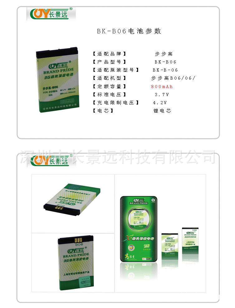 长景远BK-B06电池 步步高B06/06/手机电池