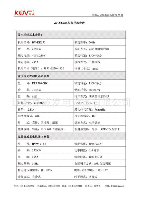 公司名称:江苏百威发电机组有限公司