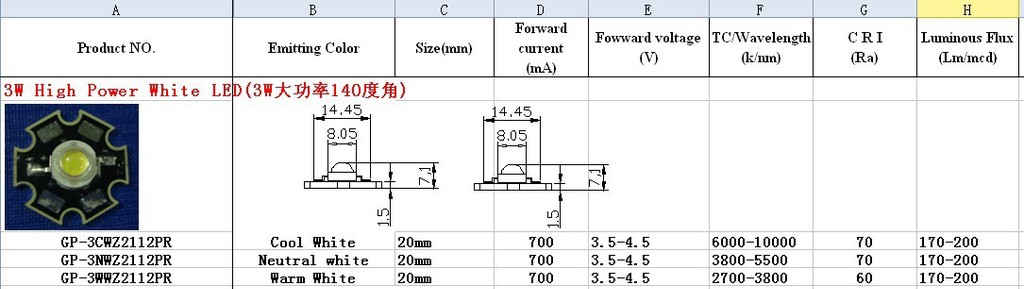 *可根据客户的不同需求订做各色温LED.(2500-10000K)