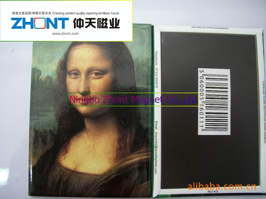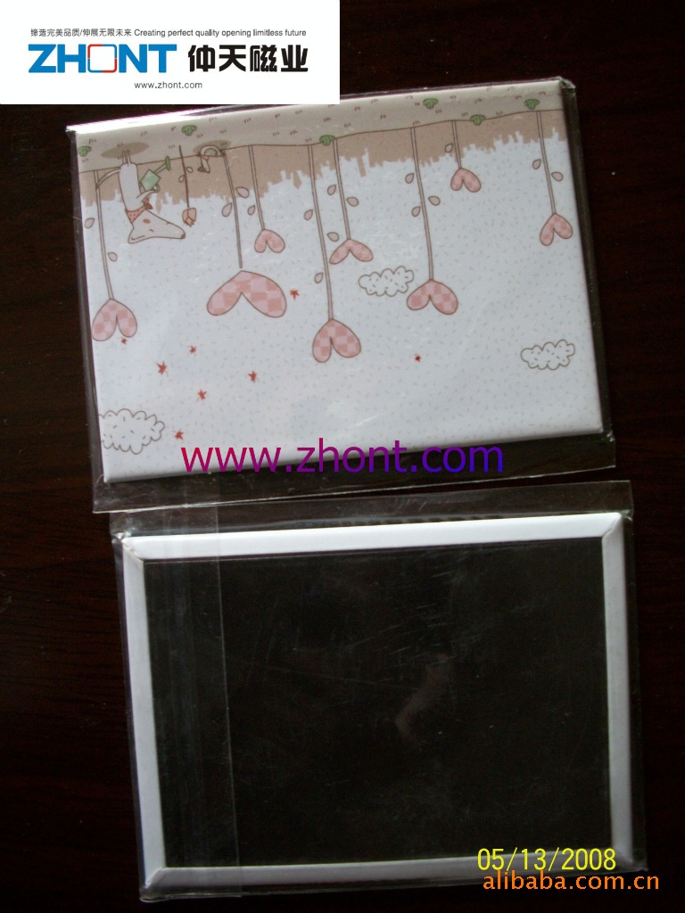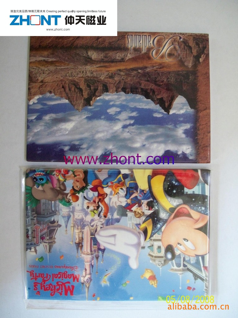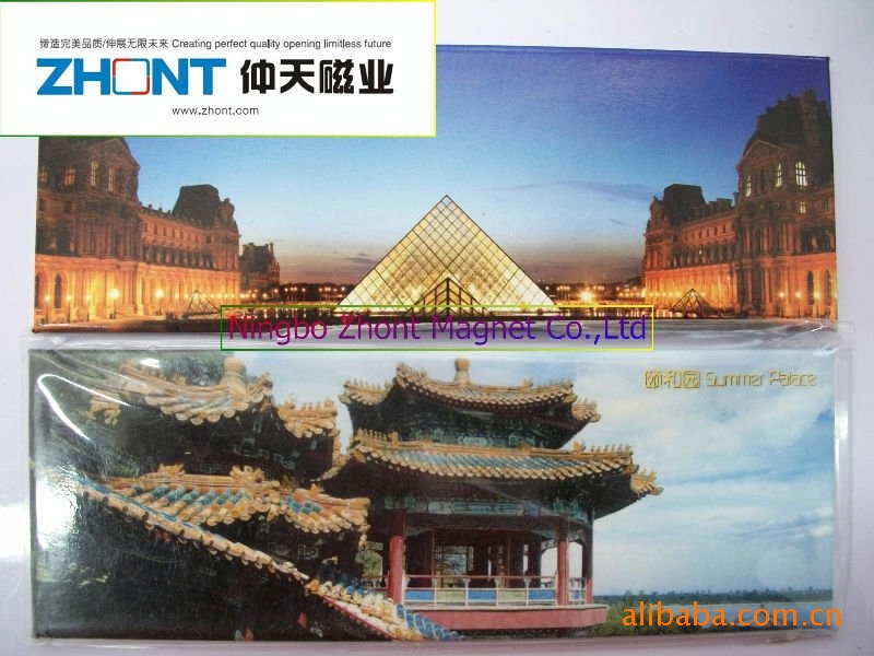 3)磁性冰箱贴:采用下面软胶磁铁+上面铜版纸或PVC彩色印刷腹膜制作而成。