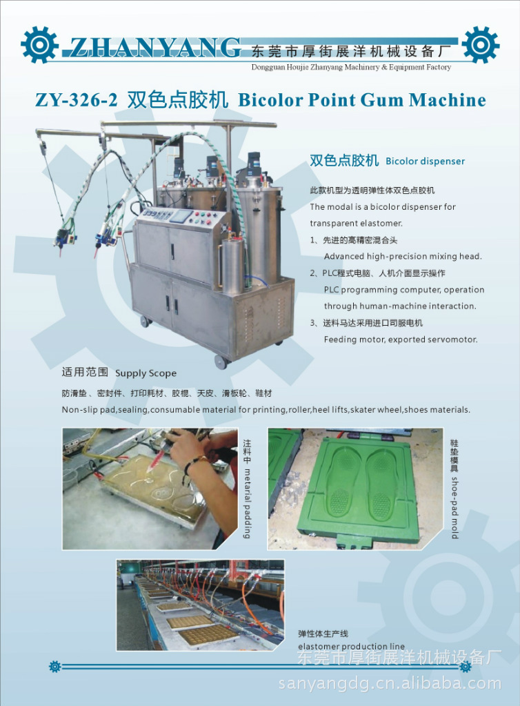 1.全机不锈钢机架。 2.可搭配不锈钢下柜 3.比例调整:机械齿轮比,可微调。 4.混合方式:静态混合,动态混合。 5.微电脑式计量处理器,学习教导式记忆定量。 6.7组定量记忆。 7.吐胶速率可轻易改变。 8.精密齿轮定量帮浦,可连续供料。 9.管路PTC感应 电子加热恒温功能。 10.防呆功能,故障显示。 |
