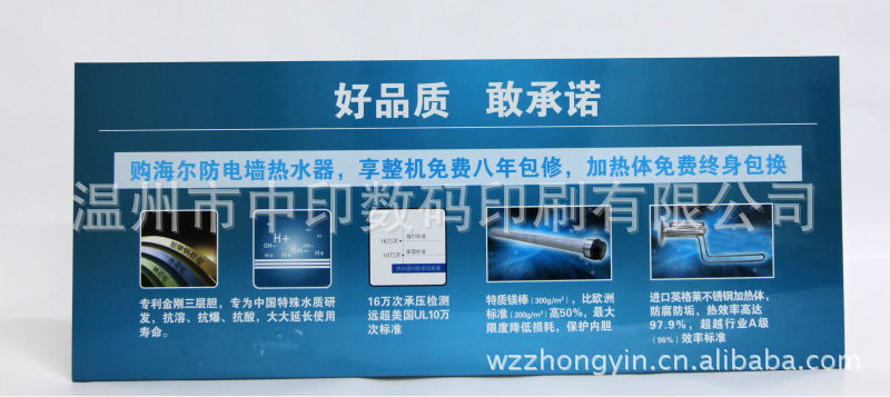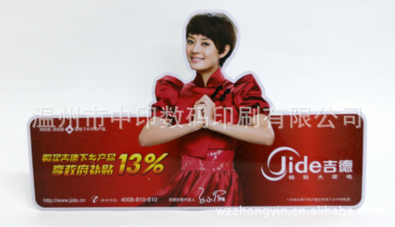 本产品采用pvc、pp塑料材料经UV机四色机彩色印刷,印后经上光油、机器压光、冲压、热合折弯等工艺处理,产品色彩亮丽、大方高贵、表面光亮如镜等特点,广泛用于商场、超市等各类卖场作产品展示、促销广告等;