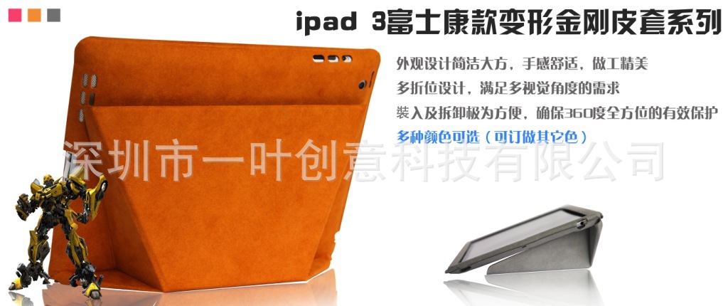 深圳一叶创意科技有限公司,本公司专业生产ipad皮套、三星手机平板皮套,专