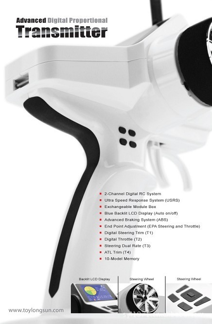 目前市面唯一一款专业的2.4G中文菜单遥控器.款带内置简体中文语言选择的专业遥控器,让你迅速成为调节设定车子参数的高手!