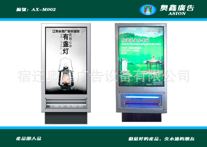 产品说明:灭蚊灯箱是一款集广告和灭蚊于一体的城市公共设施,它既可以为广告商们带来丰厚的广告效益,也可以为城市美化做贡献