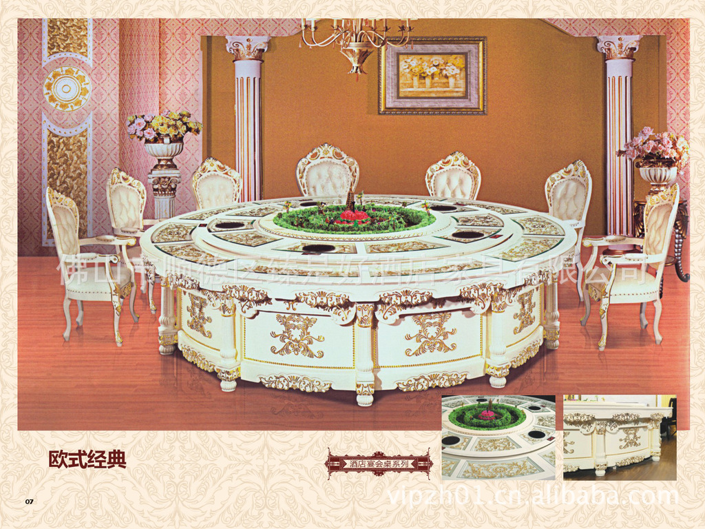大型电动餐桌 高档火锅桌 带音乐喷泉豪华电动餐桌 欧式豪华餐桌