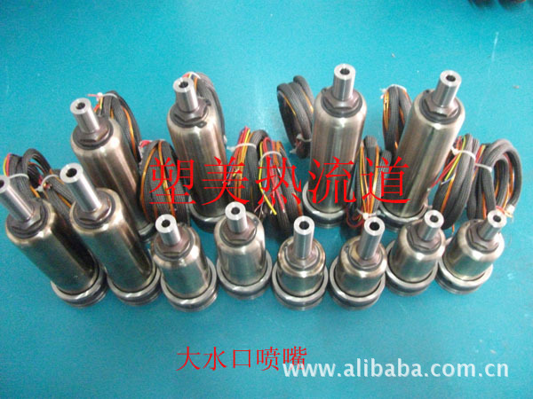 浇套式热流道系统的喷嘴镶件也有多种尺寸形状及制造材料的变化,要结合加工的塑料种类(如结晶型塑料还是非结晶型塑料)与浇口冷却情况等来综合决定。塑美热流道经常会向使用热流道经验不够多的客户提供很好的选择参考意