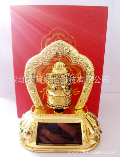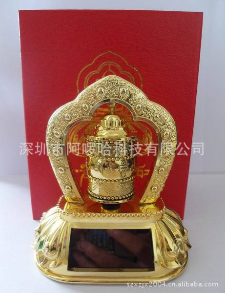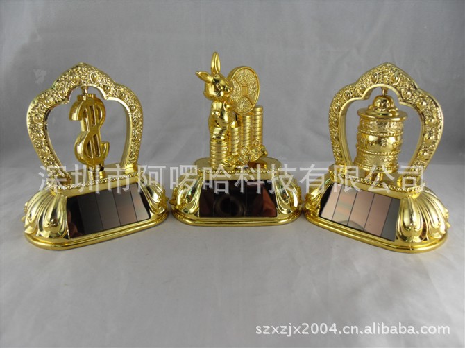 【产品介绍】 太阳能转金轮主要以太阳能为食粮,不需任何动力原料。金轮座前设有阳光接收口,即IC接口,采光度强,适合室内摆设车辆摆设。太阳能金轮中心为活动设计,IC口将所采集到的阳光转换成为太阳能,在太阳能的作用下,金轮将会转动起来,趣味十足,在它的影响下您的心情也如阳光般清朗。 它是您室内以及办公桌不可缺少的装饰,也可作为车载配饰,为你的爱车增添独一无二的活力与气质。