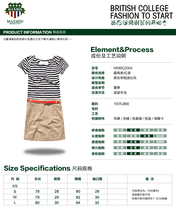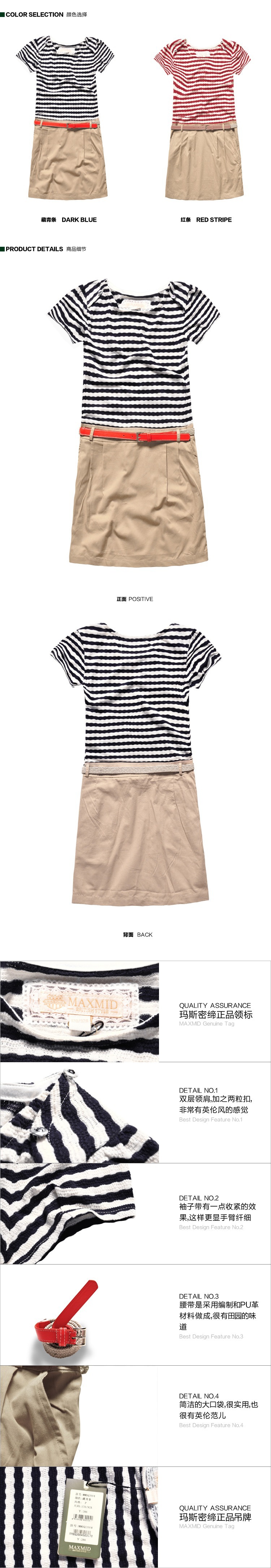 MAXMID新款英伦学院风女装拼接短袖条纹连衣裙批发MMBQ2004