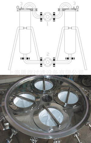 篮和过滤袋。要过滤的液体从被支撑网篮支撑的过滤袋顶部流入,这使得液体在整个过滤表面均匀分布,以便整个过滤介质中流动分布是一致的
