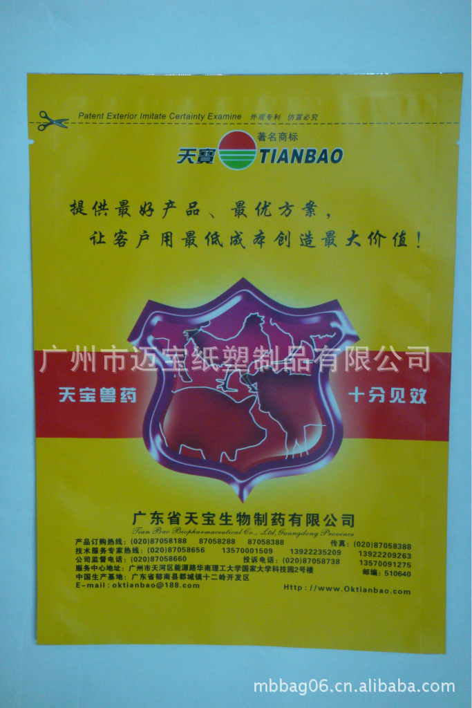 价格合理,质量保证,免费设计,做袋无忧! 广州市迈宝纸塑制品有限公司.创立于1998年.公司位于广州商业旺地的江南西.是一家前司后厂的公司.工厂成立于1993年,2002年成立深圳分公司。专业生产无纺布袋,环保袋/塑料台布.环保塑料袋,可降解胶袋,PO.PE.PP.OPP.PPE.PVC等塑料袋以及纸袋,专业印刷胶版、铜版、电雕版的商场购物袋、服装袋、背心袋、人像袋、宣传广告袋、礼品袋、手挽袋、方底袋、卡头袋、工业食品袋、复合袋、叉耳袋、垃圾袋、穿绳袋以及R袋等等,种类繁多,式样齐全。本公司技术力量雄厚,拥有高素质的专业人员,配备先进的专用设备,专业的人才、良好的员工素质及优良的设备,保证了公司具有生产高品质产品的能力。公司秉承“品质好.服务好.诚信为本”之经营方针,为客户提供优质服务。总公司:广州市迈宝纸塑制品有限公司优质服务热线:020-84440213/84440223/84471658