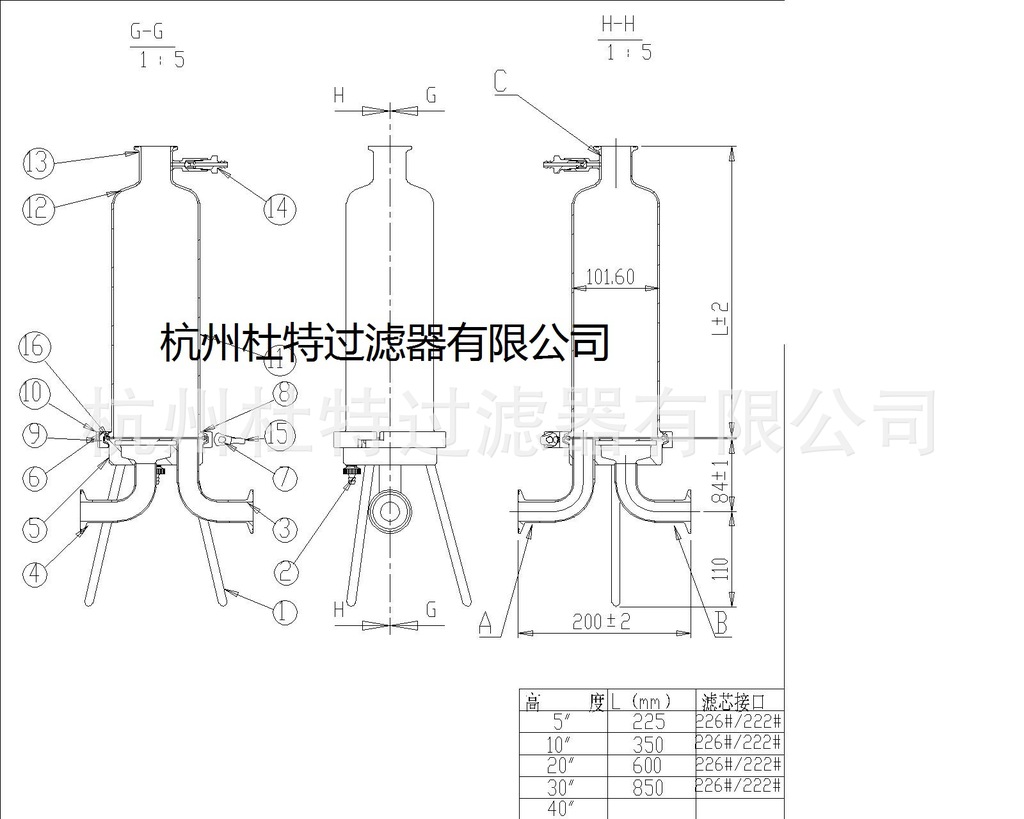 滤芯形式:10-40"标准双开口或单开口滤芯