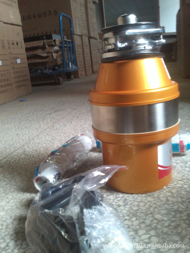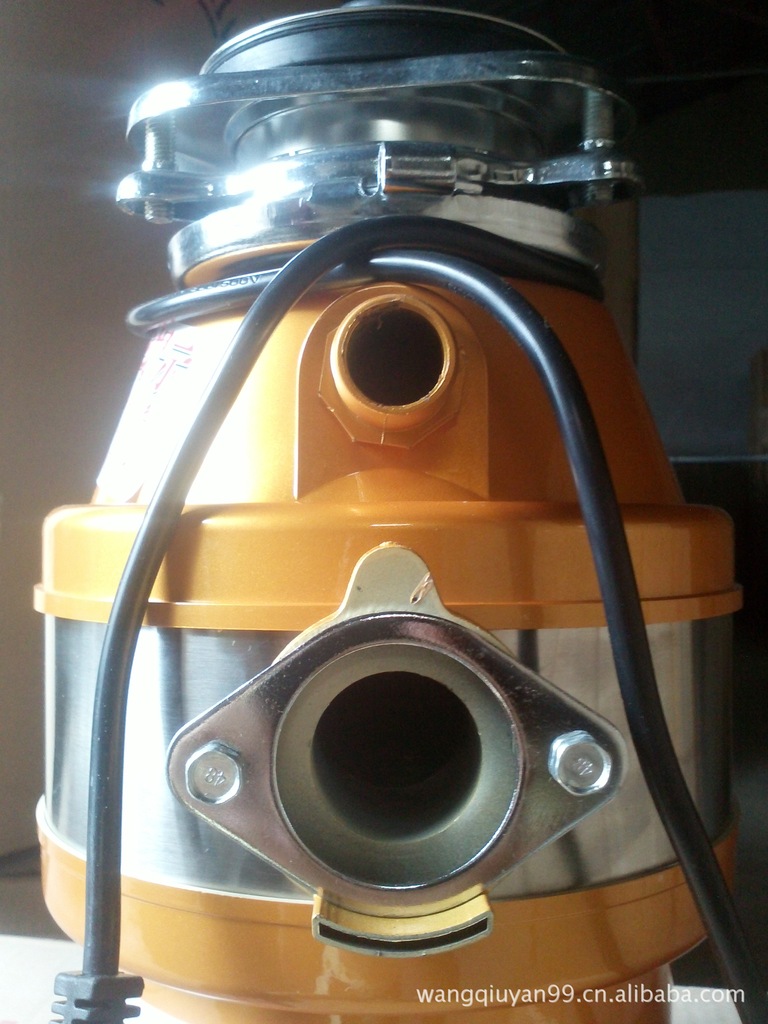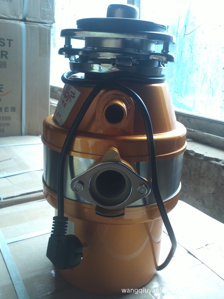 一种新型环保厨房电器,主要用于食物垃圾的粉碎处理,安装于厨房洗菜盆的排水口处,通过小型直流或交流电机驱动二级研磨或三级研磨刀盘,利用离心力将粉碎腔内的食物垃圾进行多次粉碎后排入下水道。产品只可以粉碎残羹剩饭、肉鱼骨刺、蔬菜梗叶、瓜皮果壳、蛋壳、茶叶渣、小块玉米棒芯、禽畜小骨等有机垃圾。