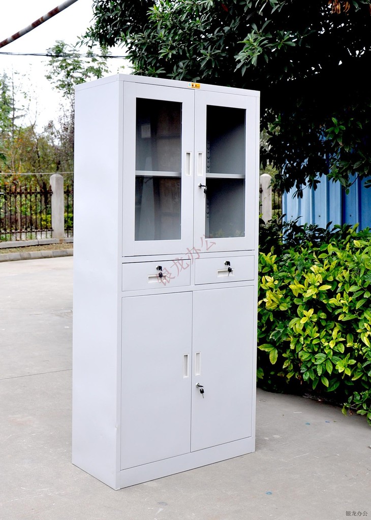 4.锁具:精美的锁具更使产品的气度非凡,安全系数保障良好。玻璃采用浮法玻璃,透明度好,便于观阅。5.抽屉:高强压型抽屉,存储量大,采用双节轨道,使抽屉推拉顺畅,造型精美,可使用于不同环境 。6.拉手:采用铝合金拉手,经久耐用,是专业的文件柜配件。