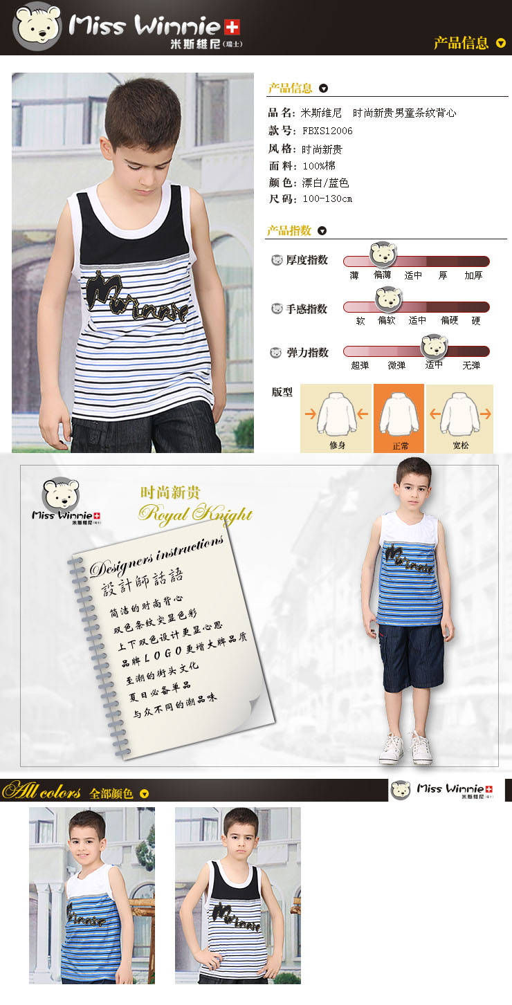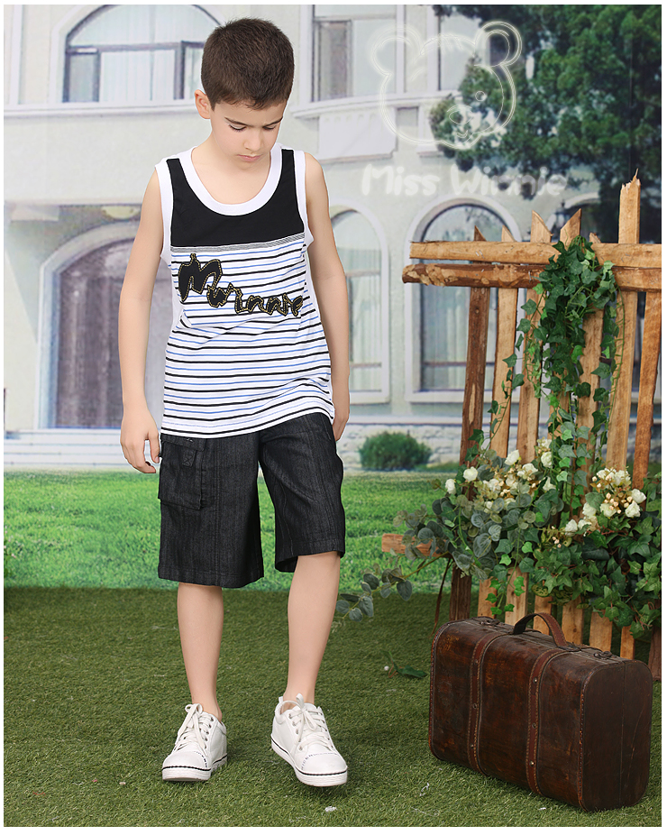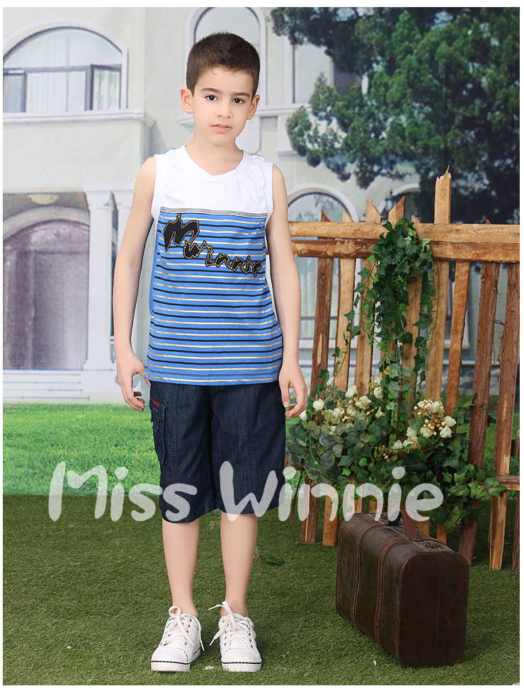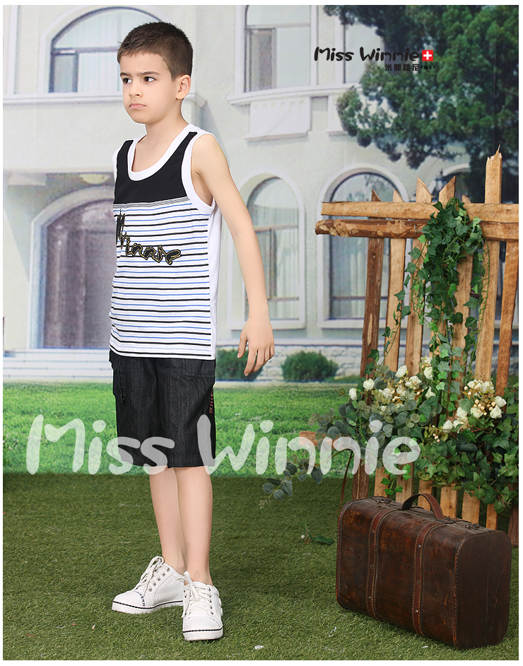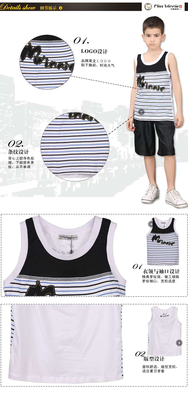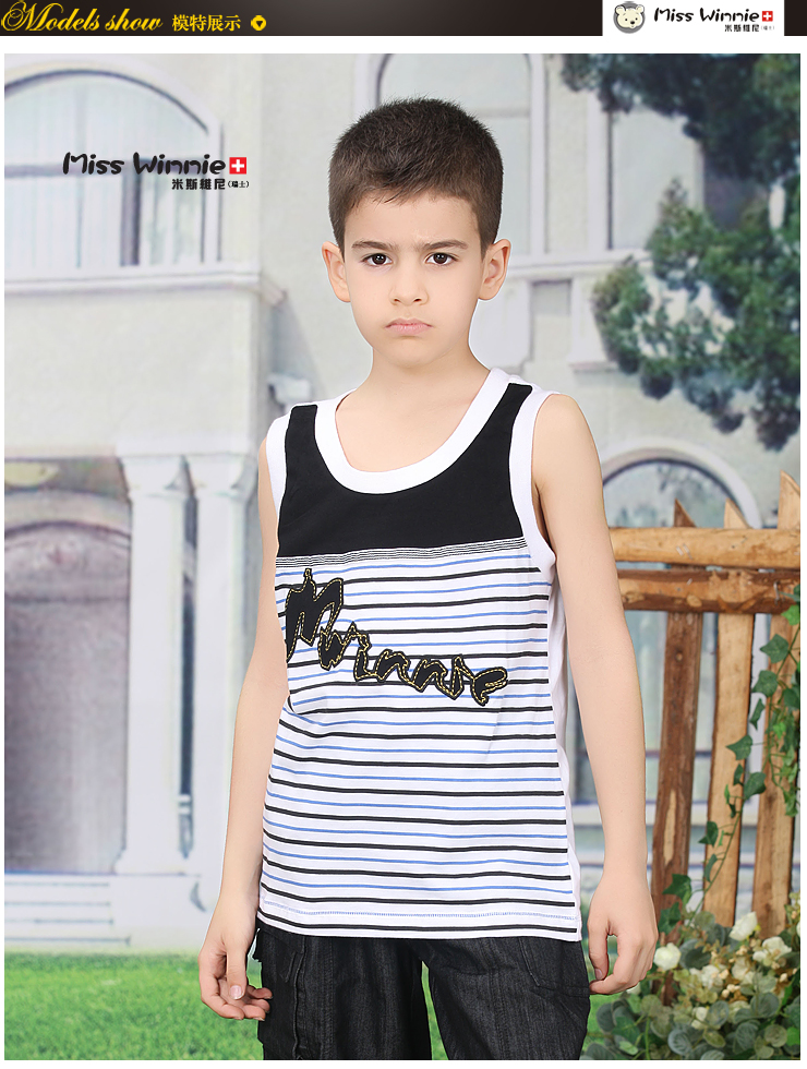 米斯维尼 品牌童装条纹印花纯棉背心 男童装代理 OEM加工12006