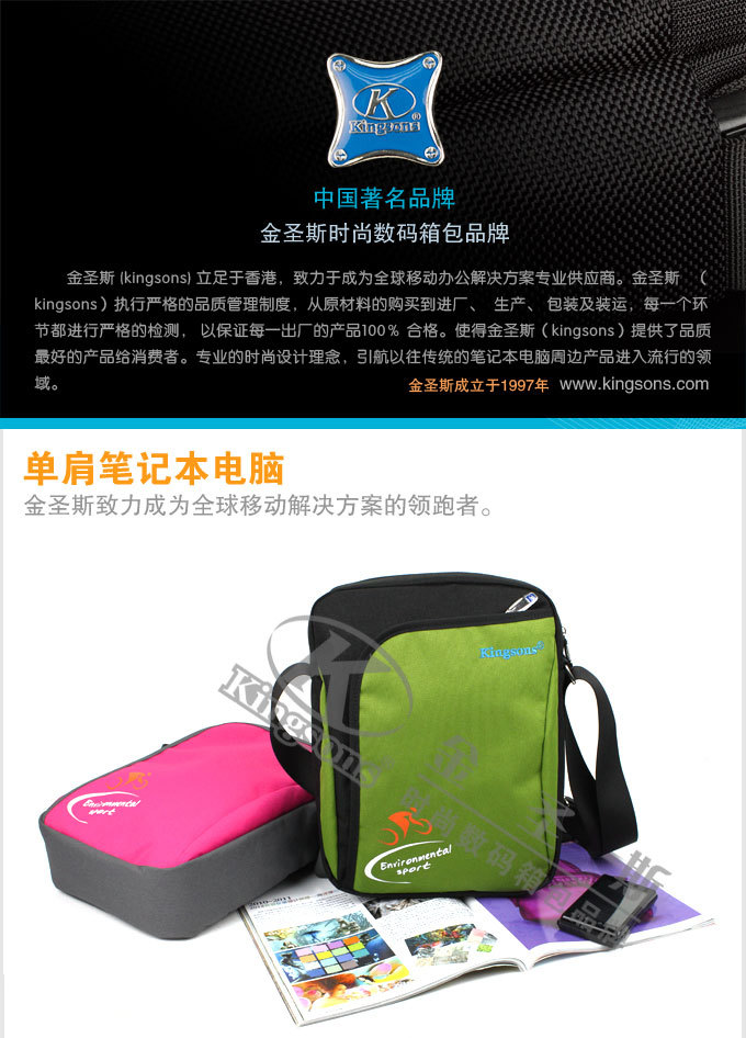 金圣斯国际集团成立于1997年,总部设在广州市花都区,旗下拥有深圳电子厂、上海分公司。现有员工1000多人,厂房面积35000多平方米。经过金圣斯人十多年来的努力,与世界众多知名企业建立了长期合作伙伴的关系,业务遍及105个国家和地区,拥有一批技术过硬的专业人才,现有科技创新专利成果20多项,并多次获得由政府部门颁发的“中国著名品牌”、“守合同重信用企业”、“广州市民营科技企业”、“广州市用户满意产品”等荣誉,是全球笔记本电脑外设产品技术领军企业之一。作为行业的坐标,本集团在成为“北京2008奥运会合作商”、“广州2010亚运会电脑包供应商”的同时,又加大力度发展电子商务,勇夺“全球十大网商”称号,并于2010年8月拔得阿里巴巴《天下网商》坐标中国001号头筹。 集团集研发、设计、生产及品牌营销为一体,全面贯彻实行ISO9001:2008国际质量体系标准,从原材料的购买到进厂、生产、包装及装运,每一个环节都进行严格的检测,以保证每一出厂的产品100%合格。通过全方位的市场调研,充分了解用户的需求,从而制造出让顾客满意的产品。专业时尚的设计理念,引航以往传统的笔记本电脑周边用品进入流行的领域。在2006年成立的香港金圣斯国际集团有限公司,展开了”金圣斯Kingsons”全球品牌运作的序幕。 经过集团全体员工十多年来的努力开拓,已经成功的为联想Lenovo、海尔 Haier、七喜HEDY、三星SAMSUNG、华为Huawei、夏新amoi、中国政府科技部、马来西亚政府教育部、阿里巴巴Alibaba等公司提供产品服务,并赢得客户一致好评!